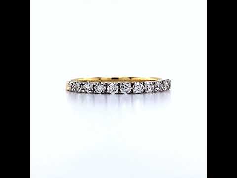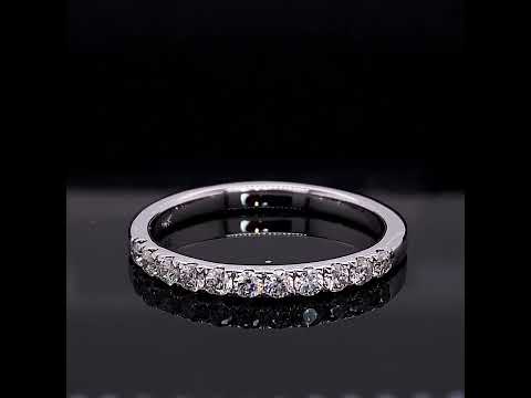 This beautiful seven stone anniversary band features a 4 prong design with eleven 0.03ct round brilliant cut Moissanites for a total of 0.33ct. It is available in 14k gold, 18k gold and platinum.