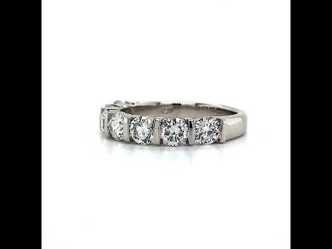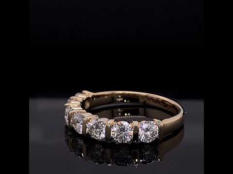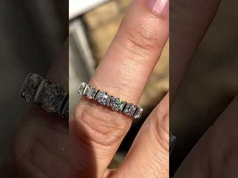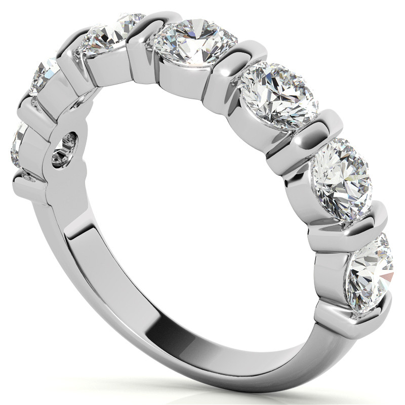 This beautiful channel set anniversary ring features seven 4.0mm (0.25ct each) round brilliant Moissanite stones for a total of 1.75 carat, set in 14k gold, 18k gold or platinum.