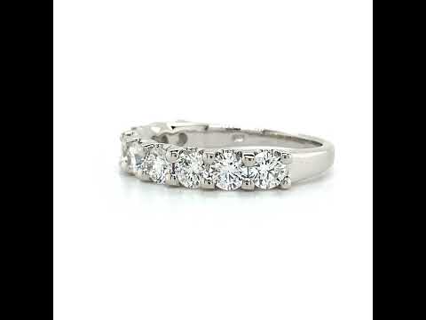 This beautiful anniversary band features nine 3.5mm round brilliant cut colorless Moissanites (1.35tcw), set in your choice of 14k gold, 18k gold or platinum.