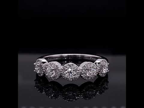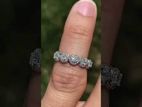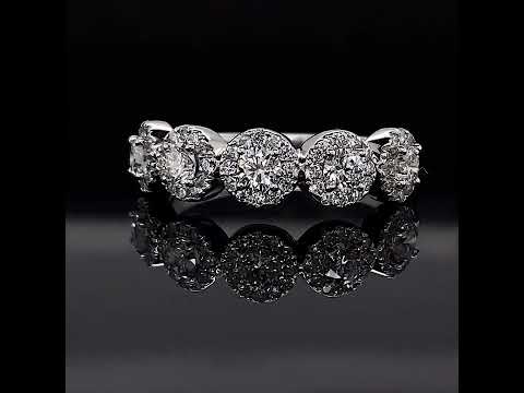 #ann166 5-Stone Round Brilliant Moissanite Halo Wedding Band