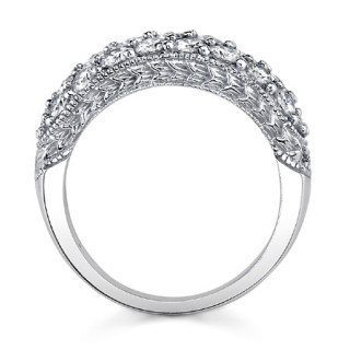 This beautiful Moissanite anniversary ring features an antique style pave design with milgrain accents, 1.50ct of round brilliant cut Moissanites, set in 14k gold, 18k gold or platinum. (25x 2.5mm)