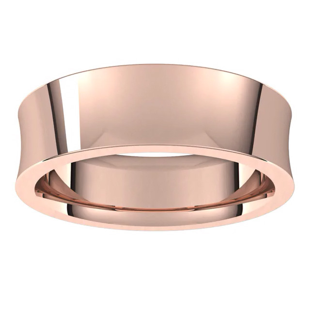 This concave style, comfort fit, 14k gold wedding band is domed on the inside allowing the ring to slide easily onto your finger for the most comfortable fit available.