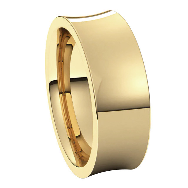 This concave style, comfort fit, 14k gold wedding band is domed on the inside allowing the ring to slide easily onto your finger for the most comfortable fit available.