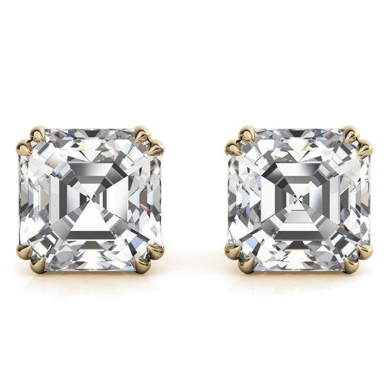#ear217-ash Asscher Double Prong Basket Moissanite Stud Earrings