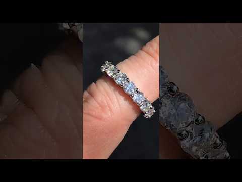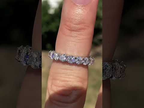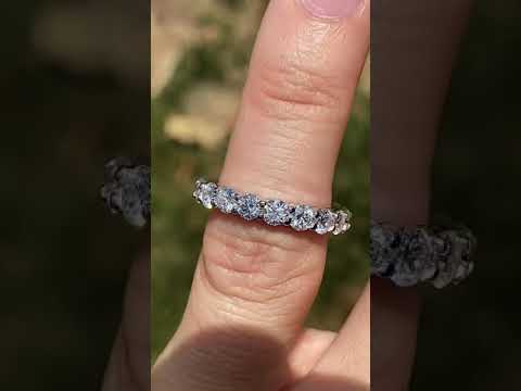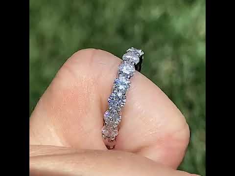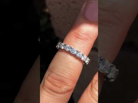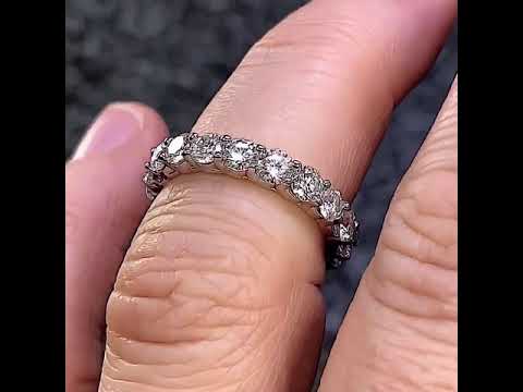 This beautiful eternity ring features a classic shared prong design with 3.5mm round brilliant Moissanite gemstones, set in 14k gold, 18k gold or platinum. The total carat weight varies from 2.55ct - 3.15ct depending on the ring size that is chosen.