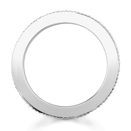 This beautiful eternity ring features a milgrain design with 3mm/0.18ct princess cut Moissanite gemstones (4.1ct - 3.6ct) channel set in 14k gold, 18k gold or platinum.