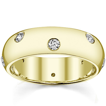 This beautiful eternity band features a Etoile design, 8x 2.5mm round brilliant Moissanite side stones (0.48ct total weight), set in 14k gold, 18k gold or platinum. The band measures 6mm in width and has a high polish finish.