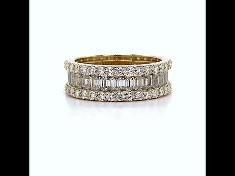 #eband092 Round and Baguette Moissanite Triple Row Wide Eternity Ring