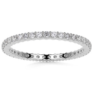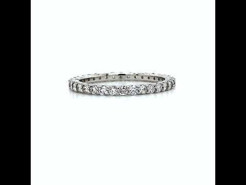This beautiful eternity band features a classic shared prong design with colorless round brilliant cut Moissanites. It is available in 14k gold, 18k gold or platinum. Each stone measures 1.5mm (0.015ct each), and the total carat weight varies from 0.50ct - 0.6ct depending on the ring size chosen.