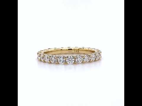 This beautiful eternity band features a u-prong design with colorless round brilliant cut Moissanites. It is available in 14k gold, 18k gold or platinum. Each stone measures 2.5mm (0.06ct each), and the total carat weight varies from 1.2ct - 1.5ct depending on the ring size chosen.