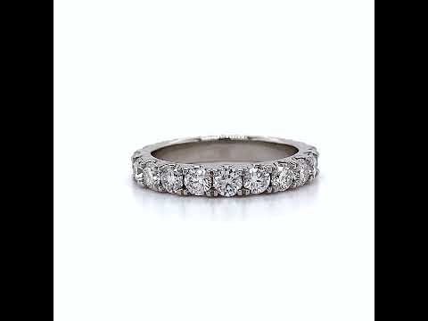 This beautiful eternity band features a split prong design with colorless round brilliant cut Moissanites. It is available in 14k gold, 18k gold or platinum. Each stone measures 3.0mm (0.11ct each), and the total carat weight varies from 1.9ct - 2.2ct depending on the ring size chosen.