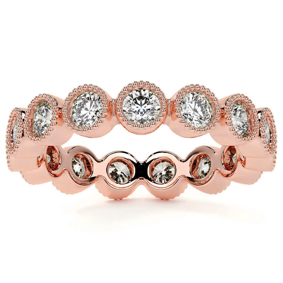 #eband308-3mm Round Brilliant Bezel Setting with Milgrain Moissanite Eternity Ring 1.3ct - 1.6ct