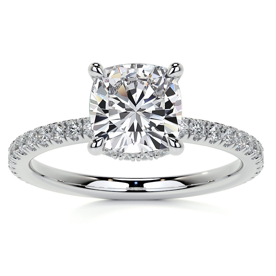 #eng009-cu Cushion Hidden Halo Moissanite Engagement Ring