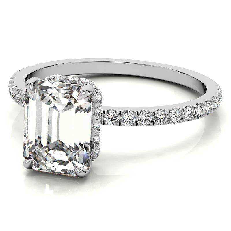 #eng009-em Emerald or Radiant Hidden Halo Moissanite Engagement Ring