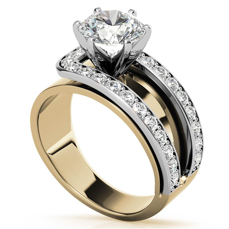 Featuring Side Stones, Unique, Two-Tone and Wide Band from our Engagement Rings collection. Model #eng026 is available in 371 brilliant center stone options, 2 fine sidestone options, and your choice of 9 eco-friendly precious metals.