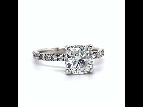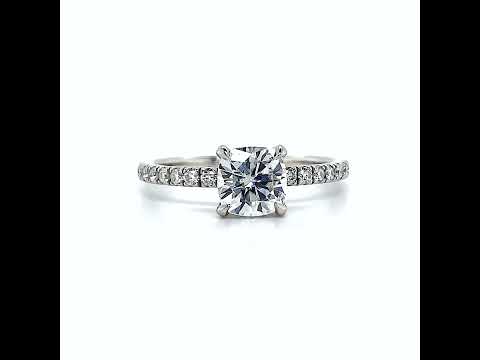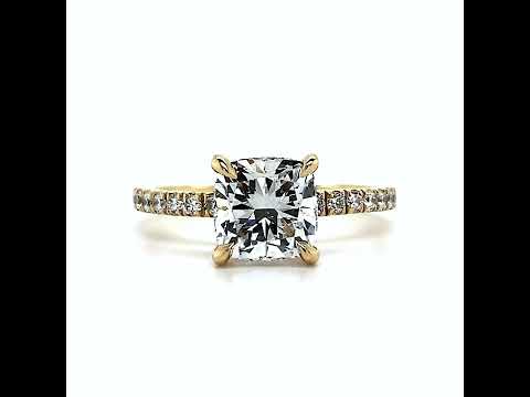 #eng057-cu Cushion Moissanite Engagement Ring with Pave Accented Basket