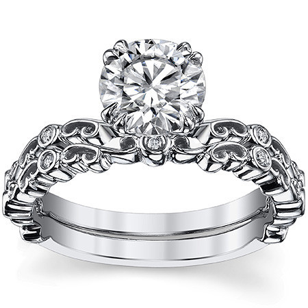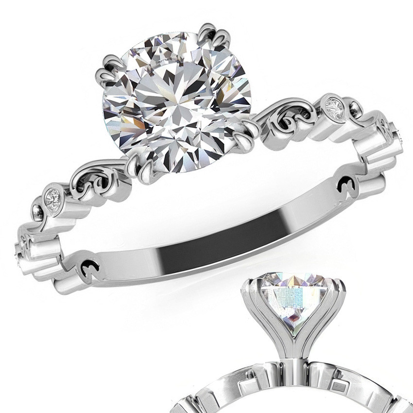 Featuring Scroll, Antique, Petite, Nature and Side Stones from our Engagement Rings collection. Model #eng094 is available in 371 brilliant center stone options, 1 fine sidestone option, and your choice of 5 eco-friendly precious metals.