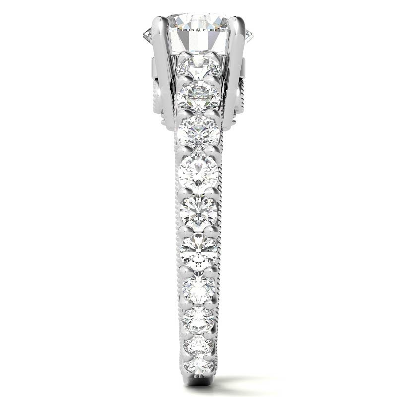 Featuring Milgrain, Antique, Etched and Side Stones from our Engagement Rings collection. Model #eng113 is available in 62 brilliant center stone options, 2 fine sidestone options, and your choice of 6 eco-friendly precious metals.