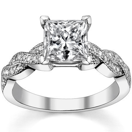 #eng127 Round Brilliant Moissanite & Diamond Twisted Milgrain Engagement Ring