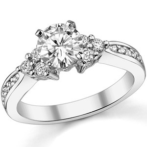 This beautiful Moissanite engagement ring features 0.28ct of round brilliant Moissanite side stones, set in 14k gold, 18k gold or platinum.