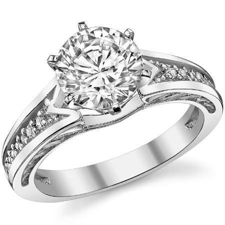 This moissanite engagement ring setting features 0.10 ct of round brilliant Moissanite side stones, set in 14k gold, 18k gold or platinum.