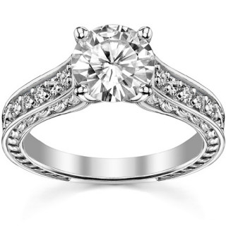 #eng212 Round Rose & Leaf Design Moissanite Engagement Ring