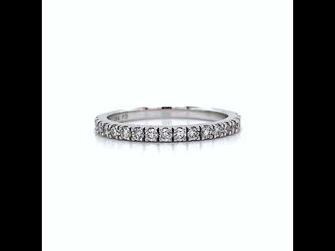 Our expert craftsmanship is on full display with a hidden halo around the center stone, with pave set stones accenting all four prongs for a breathtaking effect. To complete the set, we offer an optional 0.34ct matching band.