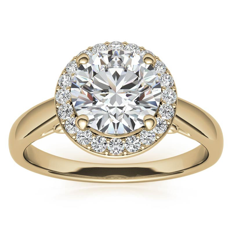 This beautiful engagement ring features a halo design with antique scroll accents, a round brilliant cut moissanite center stones with round brilliant Moissanite side stones (0.22ct - 0.15ct), set in 14k gold, 18k gold or platinum. Shown with a 1.5ct round brilliant center stone.
