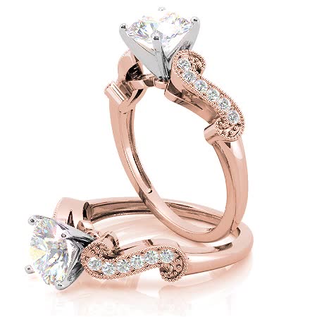 Featuring Milgrain, Scroll, Antique, Etched, Side Stones and Cathedral from our Engagement Rings collection. Model #eng255b is available in 379 brilliant center stone options, 2 fine sidestone options, and your choice of 6 eco-friendly precious metals.