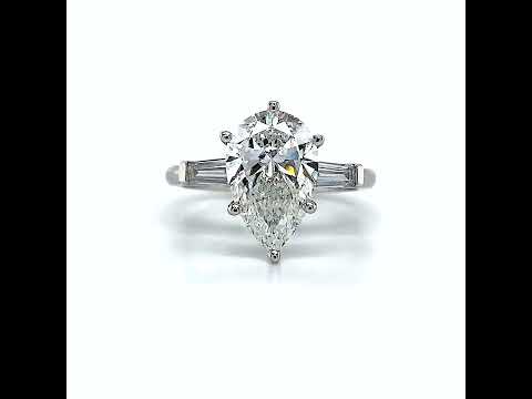 This Moissanite engagement ring setting features 0.36 ct of tapered baguette Moissanite side stones, set in 14k gold, 18k gold or platinum.