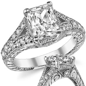 #eng484-em Antique Split Shank Radiant Moissanite Engagement Ring