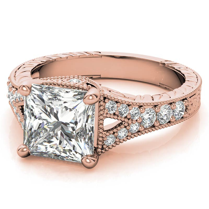 #eng484-pr Antique Split Shank Princess cut Moissanite Engagement Ring