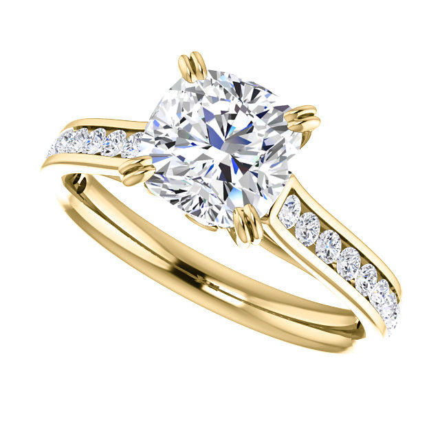 #eng490-cu Cushion Double Prong Channel Round Brilliant Moissanite Engagement Ring