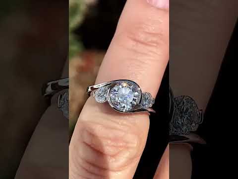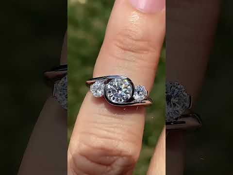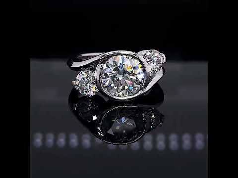 Our modern engagement ring features a sleek bypass design with a knife edge, delicately holding three stunning round brilliant Moissanite gemstones. You can customize your center stone to any size of your preference, while the two round side stones range from 3.5mm to 5mm, allowing you to personalize your cherished piece to reflect your unique style.