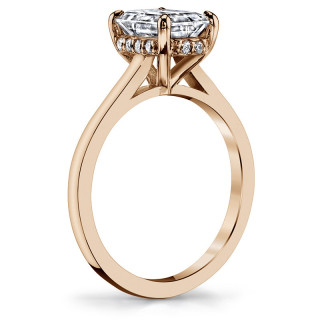 Experience the epitome of elegance with our exquisite cathedral engagement ring, boasting an encircled hidden halo of Moissanite stones (0.10 - 0.18ct) that enhances the beauty of the emerald or radiant cut Moissanite center stone. The bands are plain, highlighting the stunning center stone and hidden halo.