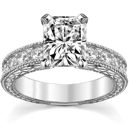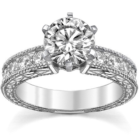 Featuring Milgrain, Antique, Etched, Side Stones and Wide Band from our Engagement Rings collection. Model #eng531b is available in 379 brilliant center stone options, 3 fine sidestone options, and your choice of 6 eco-friendly precious metals.
