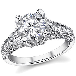 Featuring Milgrain, Antique and Side Stones from our Engagement Rings collection. Model #eng568 is available in 69 brilliant center stone options, 2 fine sidestone options, and your choice of 6 eco-friendly precious metals.