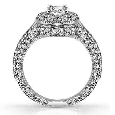 Featuring Milgrain, Halo, Antique, Side Stones and Wide Band from our Engagement Rings collection. Model #eng575 is available in 39 brilliant center stone options, 2 fine sidestone options, and your choice of 6 eco-friendly precious metals.