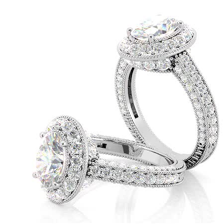 #eng575 Antique Halo Oval Moissanite Engagement Ring