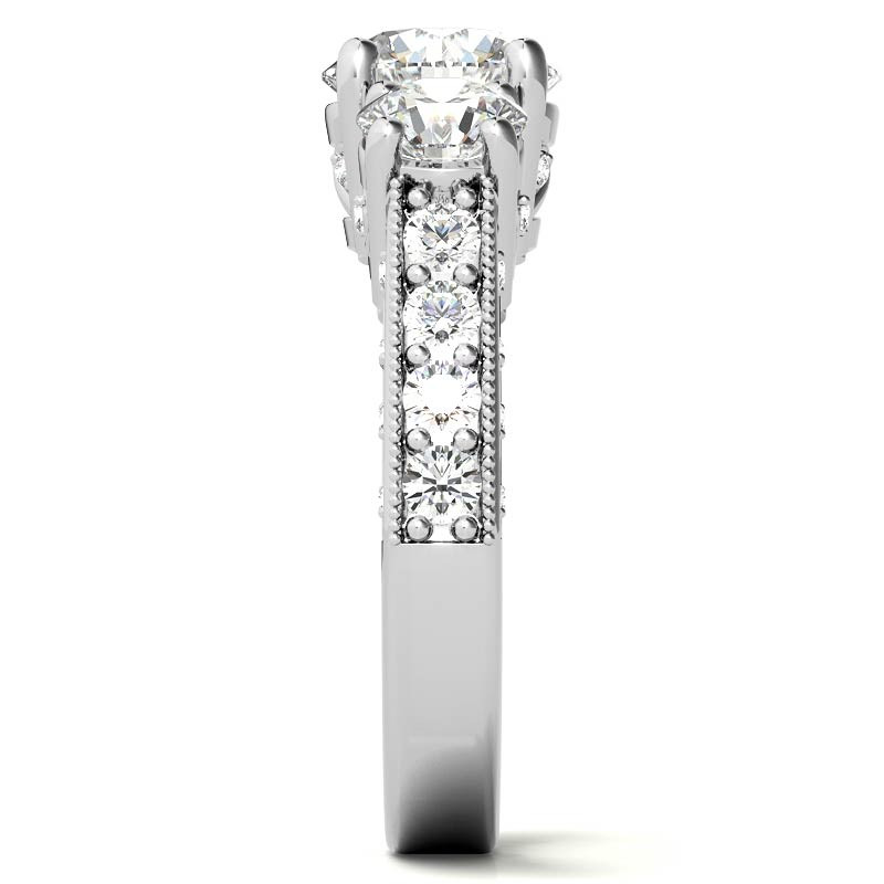 Featuring Side Stones, Three Stone, Antique, Scroll, Milgrain and Surprise Diamond from our Engagement Rings collection. Model #eng703 is available in 52 brilliant center stone options, 2 fine sidestone options, and your choice of 6 eco-friendly precious metals.