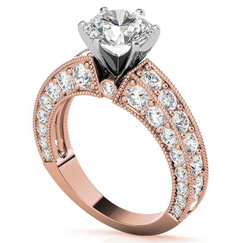 #eng714b Round Brilliant Moissanite Antique Engagement Ring Setting, 1.7ct