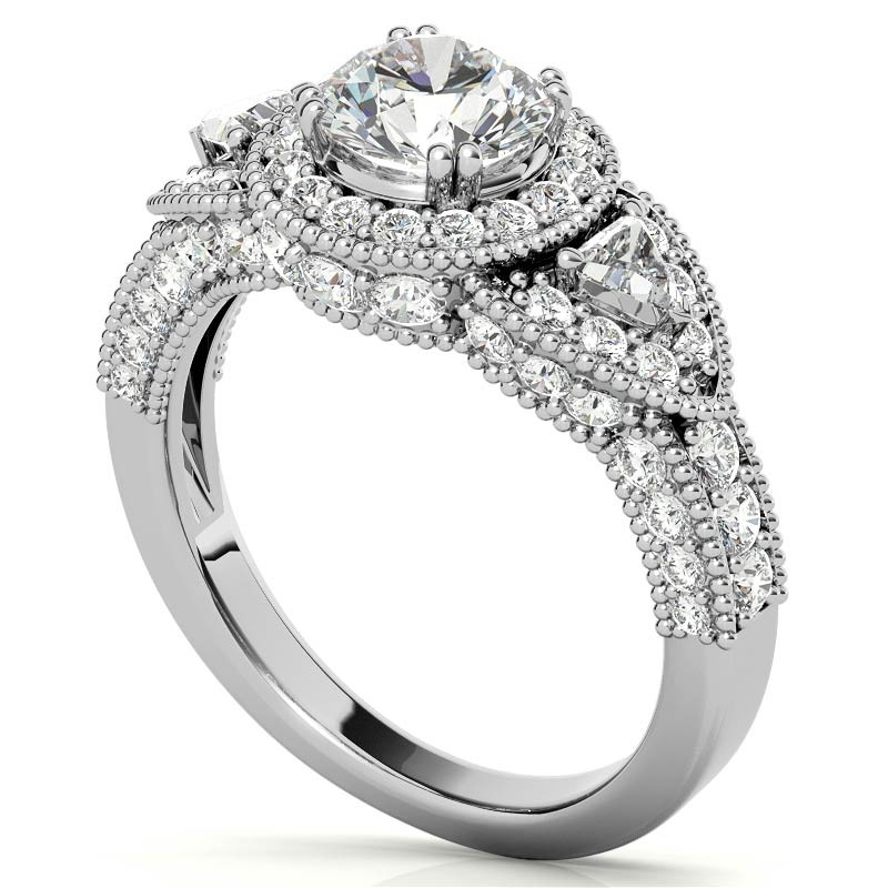 Featuring Side Stones, Three Stone, Halo, Antique, Pave and Milgrain from our Engagement Rings collection. Model #eng808 is available in 35 brilliant center stone options, 2 fine sidestone options, and your choice of 6 eco-friendly precious metals.