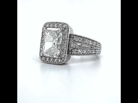 #eng843 Radiant/Emerald Halo Antique Moissanite Engagement Ring