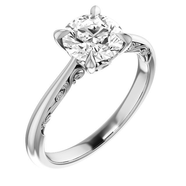 #enr003 Round Surprise Stone Solitaire with Scroll Accents