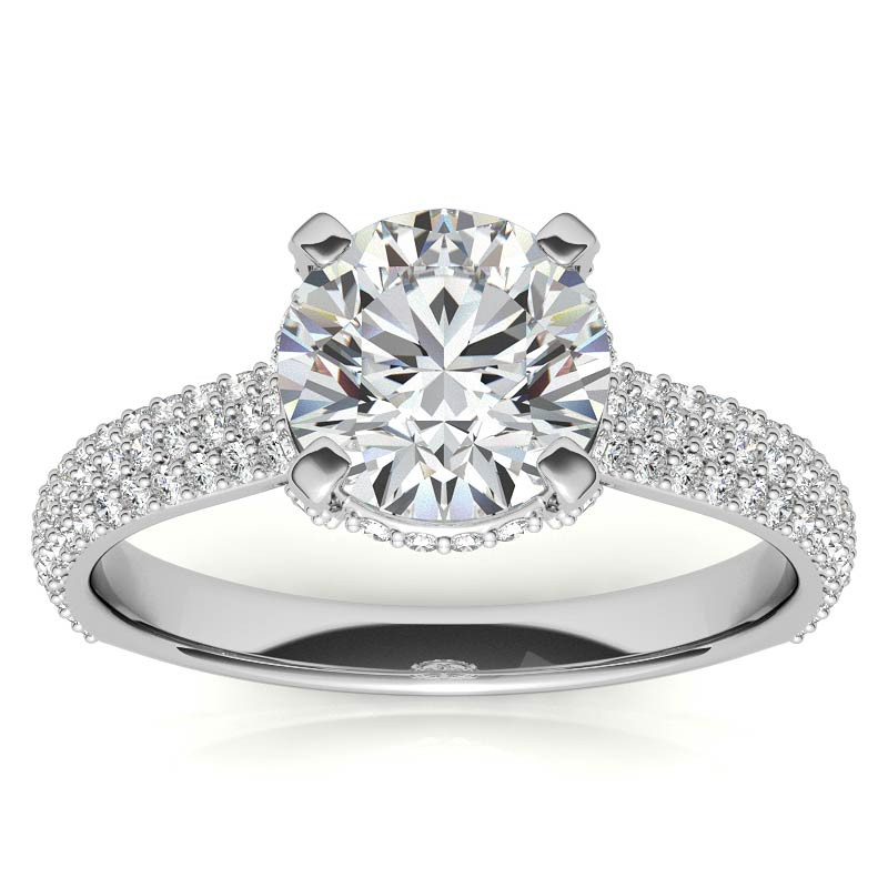 Featuring Pave, Side Stones and Hidden Halo from our Engagement Rings collection. Model #enr012 is available in 74 brilliant center stone options, 1 fine sidestone option, and your choice of 4 eco-friendly precious metals.