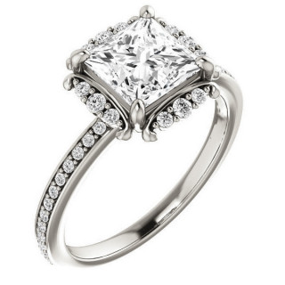 #enr014-pr Princess cut Moissanite Halo Engagement Ring