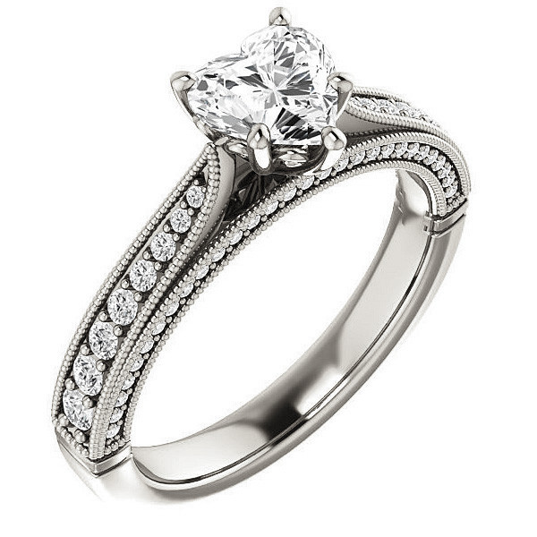 #enr021-hrt Heart Shaped Scroll Milgrain Moissanite Engagement Ring