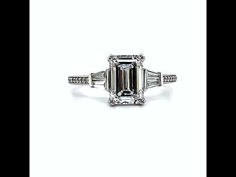 #enr033-em Emerald Moissanite & Baguette Diamond Engagement Ring