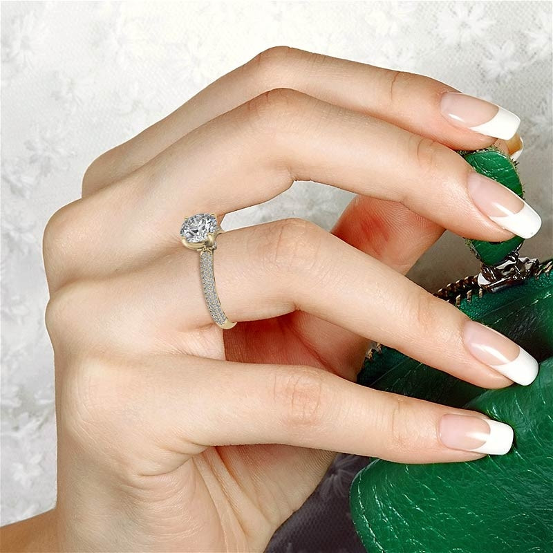 Featuring Pave, Side Stones and Surprise Diamond from our Engagement Rings collection. Model #enr040 is available in 68 brilliant center stone options, 1 fine sidestone option, and your choice of 4 eco-friendly precious metals.