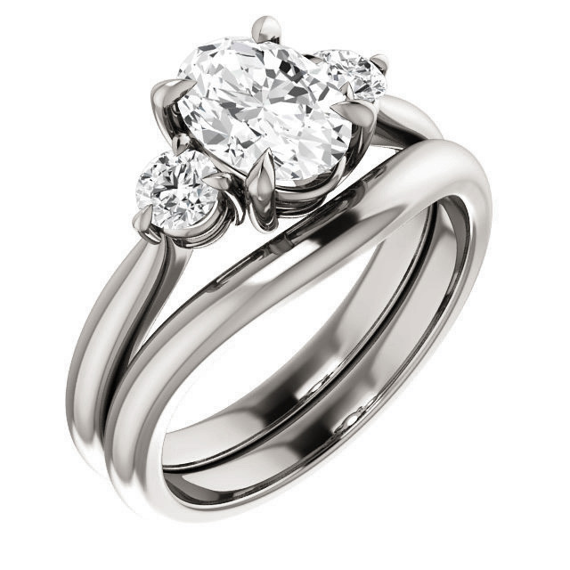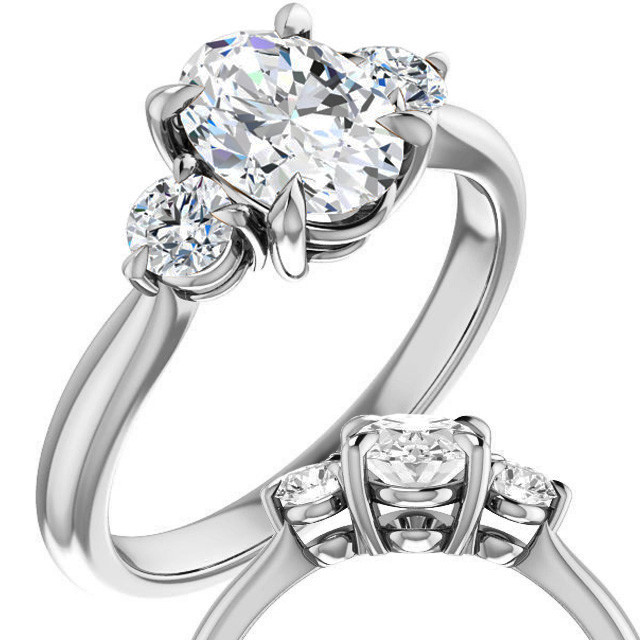 #enr048-ov Oval and Round Moissanite 3-Stone Ring